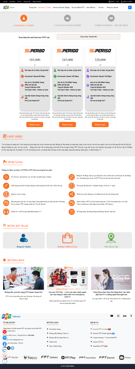 - Thông Tin Chi Tiết về Gói Dịch Vụ: Mẫu thiết kế website giúp bạn trình bày thông tin chi tiết về các gói dịch vụ internet của FPT Telecom, bao gồm tốc độ, giá cả, và các ưu đãi đặc biệt.